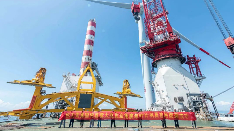 近日,汕頭某海域,巨力索具研發(fā)的國內首臺50噸大兆瓦全角度旋轉式海上單葉片吊具,剛剛面世,便展開連續(xù)作業(yè),順利完成5臺風機的葉片吊裝,經(jīng)受住了考驗,完美的展示了巨力吊具的高可靠性、高安全性及高效率。
