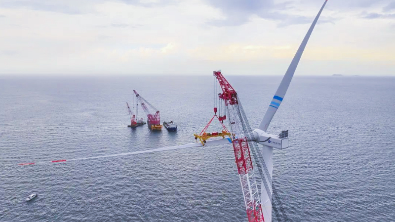 近日,廣西首個(gè)海上風(fēng)電項(xiàng)目——廣西投資集團(tuán)防城港海上風(fēng)電示范項(xiàng)目A場址工程首臺(tái)風(fēng)電機(jī)組完成吊裝,為2023年底首批機(jī)組并網(wǎng)發(fā)電打下基礎(chǔ)。巨力索具所研發(fā)50噸折疊式海上單葉片吊具順利完成首臺(tái)風(fēng)機(jī)的葉片安裝。