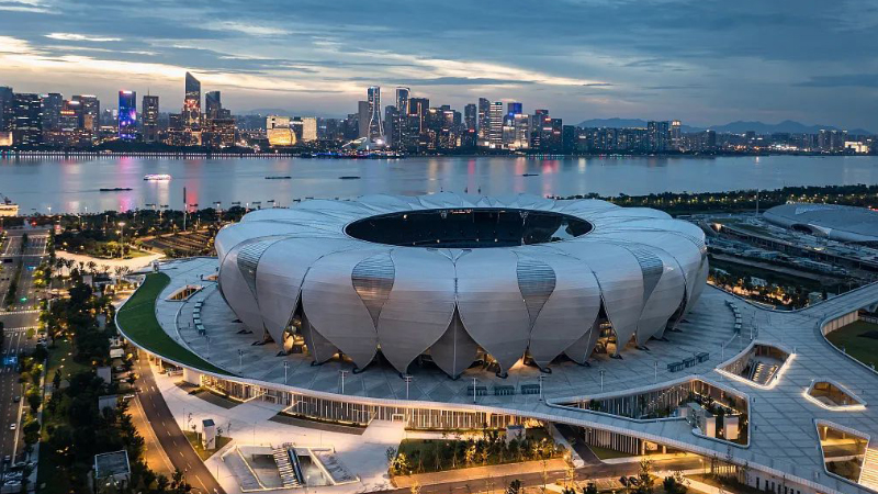 比賽場館是舉辦一場精彩賽事的前提,巨力索具參與建設(shè)的杭州奧體中心體育場(以下,簡稱“杭州奧體中心)是杭州亞運(yùn)會(huì)開幕場館及重要比賽場館之一。主體的運(yùn)動(dòng)場館外形似蓮花,造型動(dòng)感飄逸,由28片大花瓣和27片小花瓣組成。項(xiàng)目采用巨力索具高強(qiáng)度鋼拉桿和高釩索,增強(qiáng)花瓣面外穩(wěn)定。該造型取意于杭州絲綢紋理與紡織體系,建筑體態(tài)源于錢塘江水的動(dòng)態(tài),擁有簡潔的花瓣單元,猶如一朵美麗的蓮花綻放于錢塘江畔。