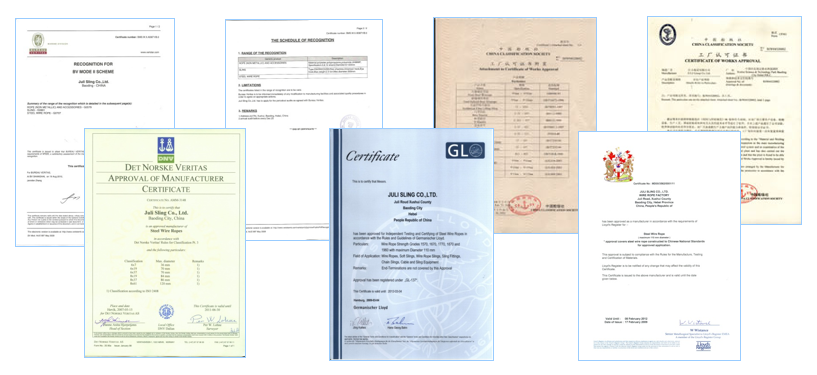巨力索具致力于纜繩和繩網(wǎng)領(lǐng)域的技術(shù)創(chuàng)新,為客戶提供高品質(zhì)的產(chǎn)品。巨力纜繩產(chǎn)品通過了中國船級社CCS認(rèn)證、美國船級社ABS認(rèn)證、英國船級社LR認(rèn)證、法國船級社BV認(rèn)證、德國船級社GL認(rèn)證、挪威船級社DNV認(rèn)證等一系列權(quán)威認(rèn)證。