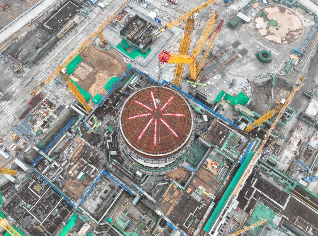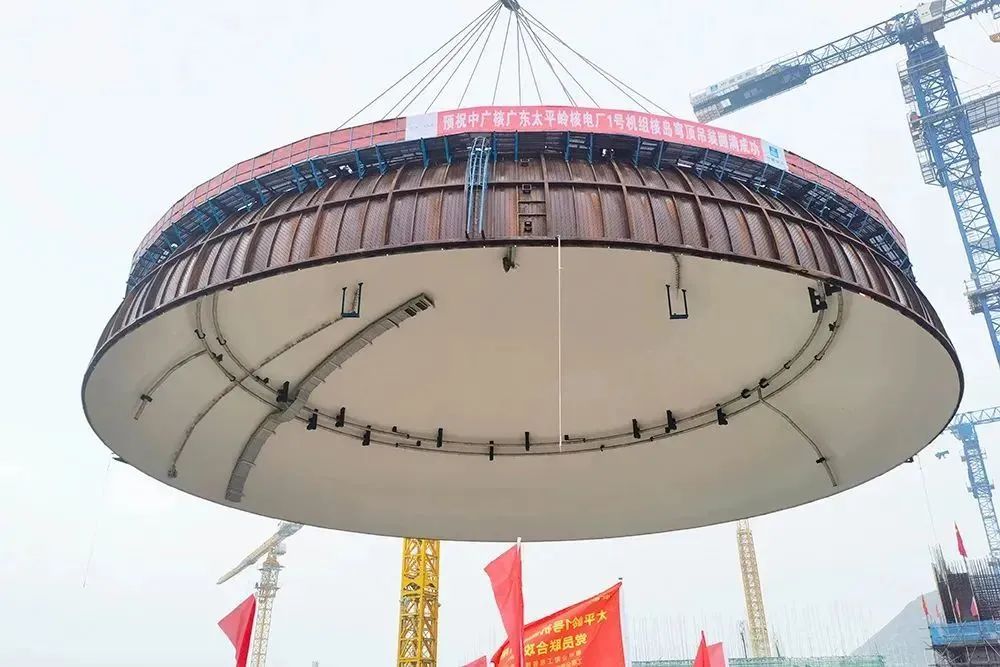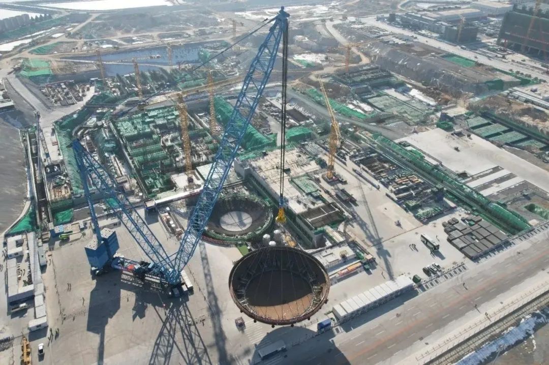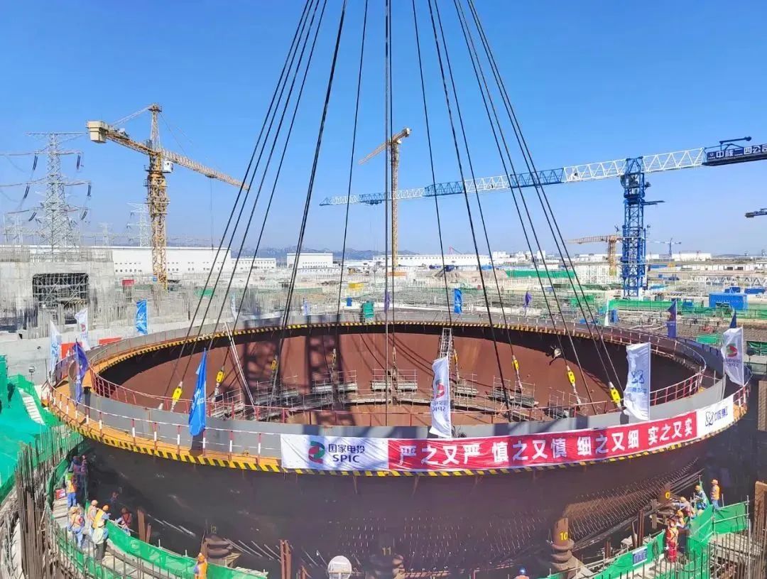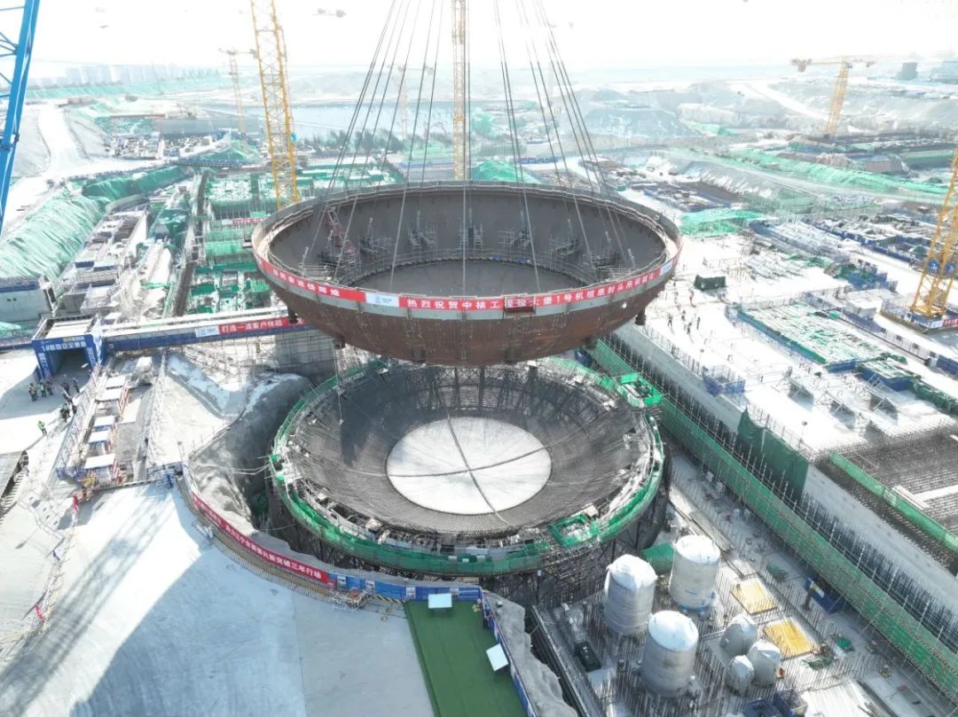 近日,徐大堡核電1號機(jī)組CV底封頭吊裝順利完成。 巨力索具成套吊裝系統(tǒng)確保吊裝過程穩(wěn)步進(jìn)行。