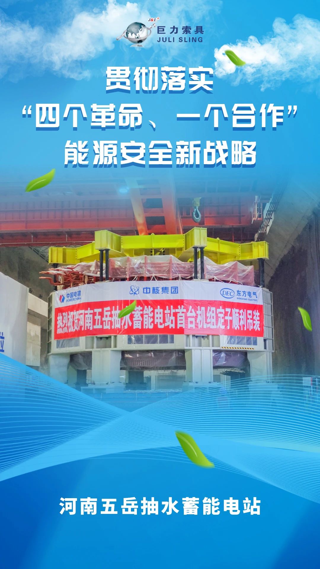 2024年3月27日,中國水電四局承建的河南五岳抽水蓄能電站首臺機組定子吊裝就位,巨力索具制造的350T定子起吊工具全程保障該項目吊裝順利進行,巨力索具從項目立項之初就與東方電機技術研發(fā)團隊反復優(yōu)化吊裝方案,確保吊具與定子外形尺寸高度契合,吊裝形式安全可靠。