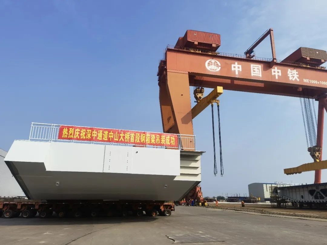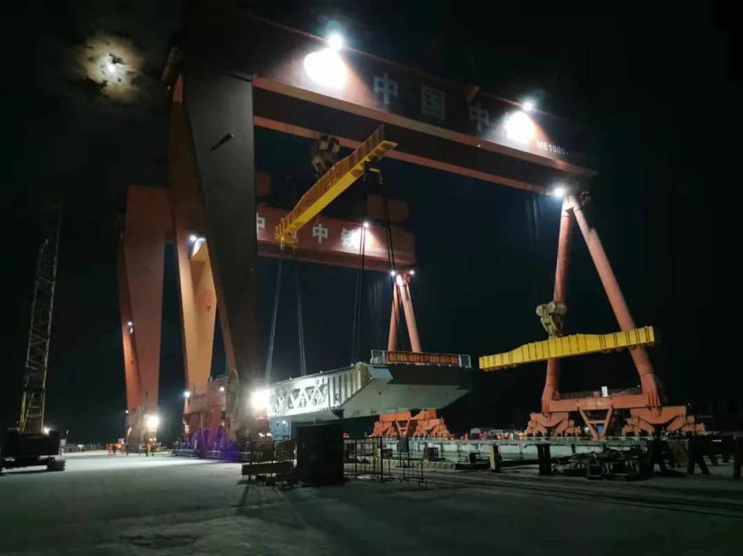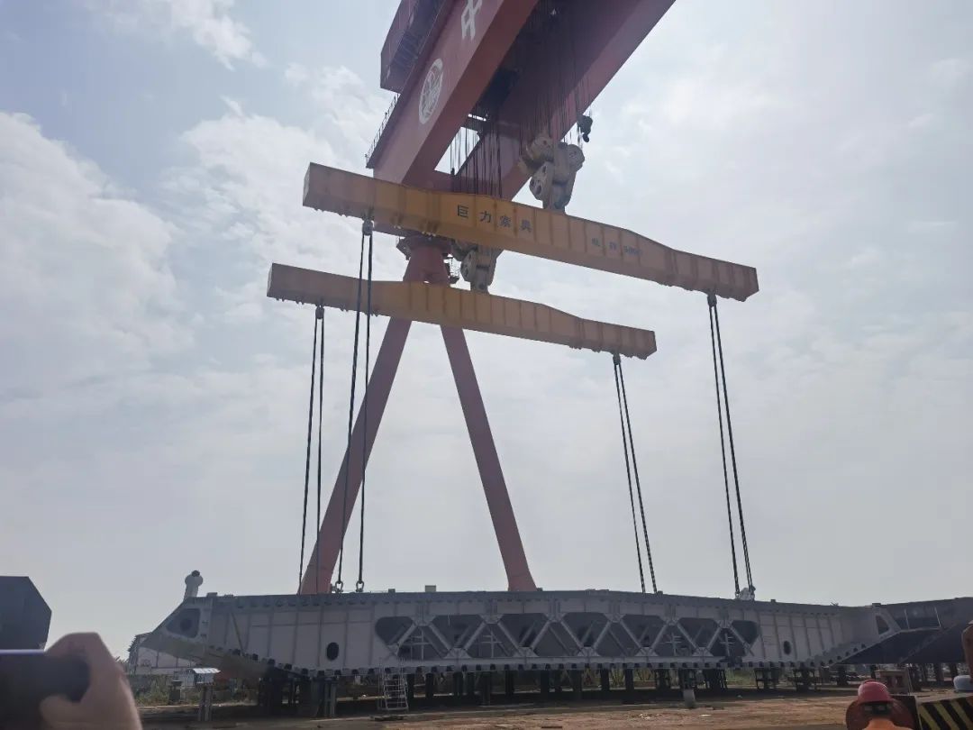 11月19、20日,長(zhǎng)133米,寬20米,高4.7米,重1700噸的大型鋼箱梁段運(yùn)至指定位置,巨力索具研發(fā)制造的鋼箱梁吊具全程保障該項(xiàng)目吊裝順利實(shí)施,標(biāo)志著深中通道G05標(biāo)段泄洪區(qū)鋼箱梁大節(jié)段XG9L出海平臺(tái)在中鐵山橋南方裝備試運(yùn)行成功。此次成功試運(yùn)行為深中通道鋼箱梁大節(jié)段順利啟運(yùn)奠定了堅(jiān)實(shí)基礎(chǔ)。