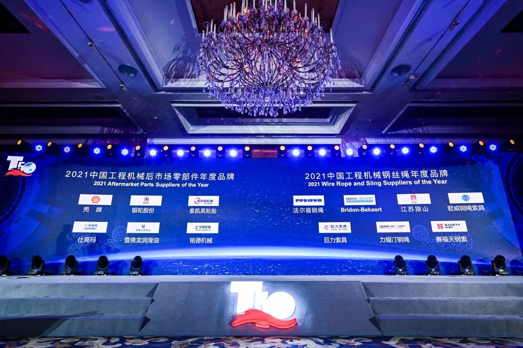 本次峰會,巨力索具榮獲“2021中國工程機械鋼絲繩年度品牌”,擁有36年的鋼絲繩制造經驗,制造工藝已達到國際先進水平,最大可滿足用戶2160Mpa抗拉強度需求,最小破斷拉力值達到國際一線品牌標準,且相比進口產品成本更低,能夠有效的降低主機廠的采購成本。