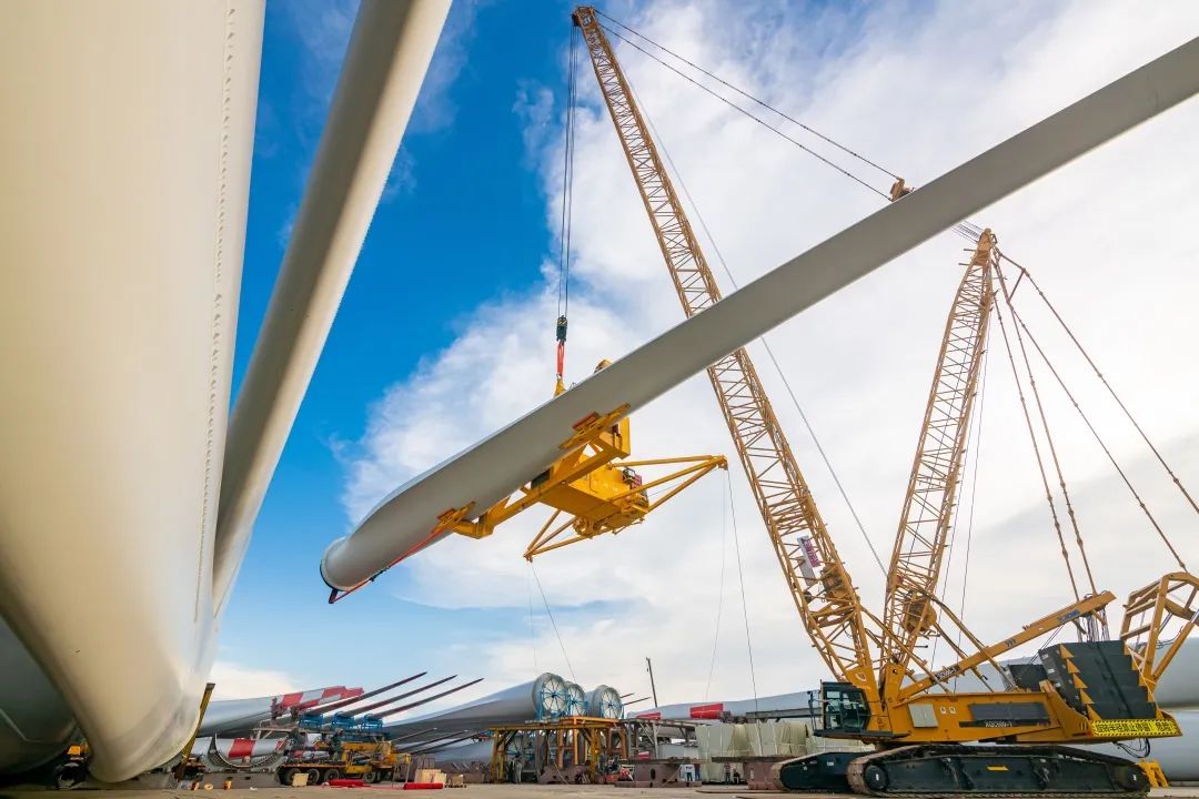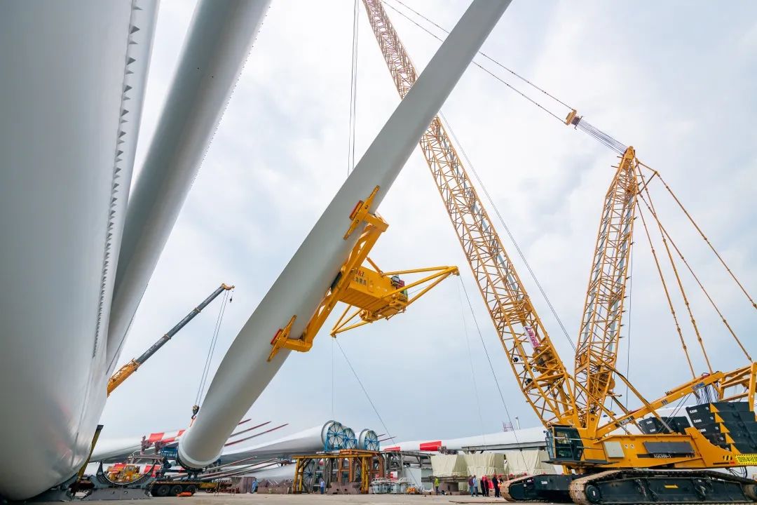 大兆瓦全角度海上單葉片吊具可滿足單只葉片最大承重50噸。同時(shí),將原有的吊裝窗口平均風(fēng)速提升至15m/s,最大陣風(fēng)風(fēng)速可達(dá)18m/s,極大拓寬了風(fēng)機(jī)吊裝窗口期,突破了海上吊裝作業(yè)風(fēng)速邊界限制,是又一款海上風(fēng)電單葉片吊裝“利器”。