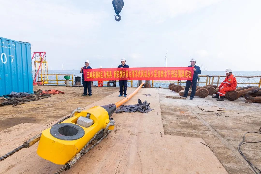 6月7日,海上漂浮式風(fēng)機(jī)永久系泊索在廣東陽江項目場完成水下鋪設(shè),為后續(xù)海上風(fēng)機(jī)浮式基礎(chǔ)平臺到達(dá)安裝打下堅實基礎(chǔ)。