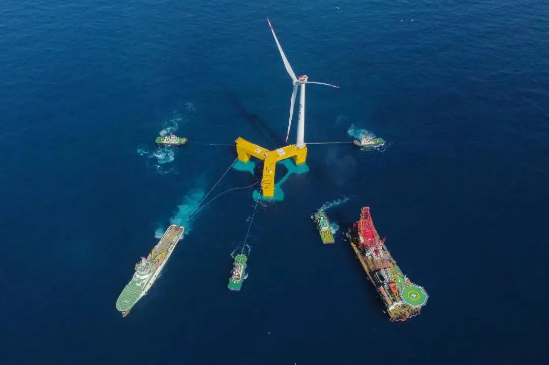 近日,從廣東茂名港出發(fā)的中國首臺浮式風(fēng)電機(jī)組于7月11日成功抵達(dá)陽江海上風(fēng)電場并開始進(jìn)行系泊索安裝。