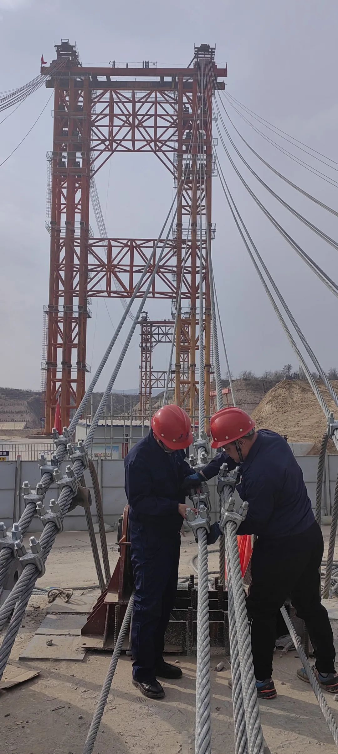節(jié)后開工第一天,廣西橫州特大橋項(xiàng)目現(xiàn)場(chǎng)一派熱火朝天。巨力索具主要負(fù)責(zé)該項(xiàng)目纜索與鋼箱梁施工安裝,為確保施工進(jìn)度,浦江纜索公司員工堅(jiān)守崗位,嚴(yán)守職責(zé),克服環(huán)境等困難,穩(wěn)步推進(jìn)各項(xiàng)作業(yè)進(jìn)度,以高質(zhì)量工程建設(shè)助力公司高質(zhì)量發(fā)展。