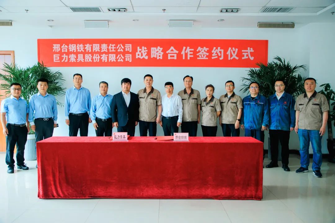 2023年6月19日,巨力索具與邢臺鋼鐵簽訂戰(zhàn)略合作協(xié)議,邢臺鋼鐵董事長張育明,巨力索具董事長楊建國、總裁楊超出席簽約儀式,并就合作情況展開詳細(xì)座談。