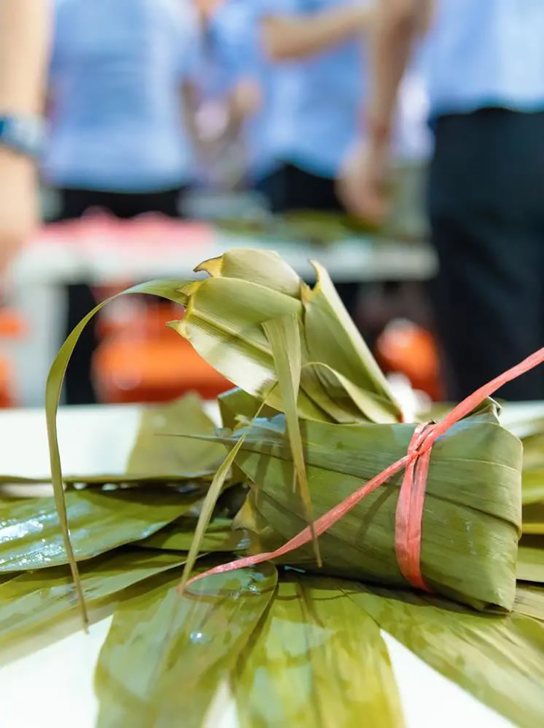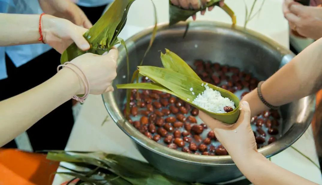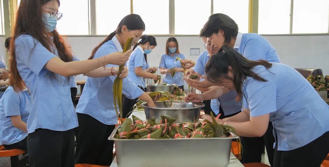 大家邊包粽子邊交流經驗,一雙雙靈巧的手把自己對生活的熱愛全都包進了粽子里。不一會兒,一個個胖鼓鼓的粽子便堆成了小山,勞動的成果滿滿地呈現(xiàn)在大家的面前。片片粽葉散發(fā)著清香,粒粒糯米寄托著溫情,濃濃的節(jié)日氣氛拉近了大家的心。