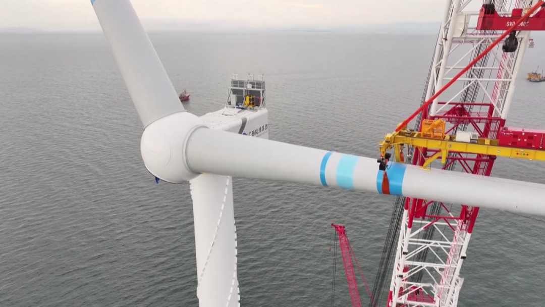 據(jù)悉,本次吊裝的風(fēng)電機(jī)組單支葉片長(zhǎng)111.5米、重42噸,葉輪掃風(fēng)面積40627平方米。